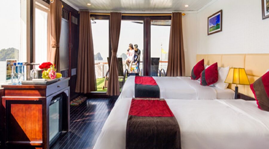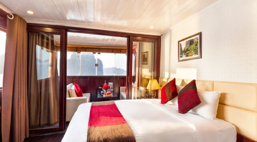 12:00 Upon boarding Amanda Cruise, our crew welcome you with a refreshing drink and cold towel before checking into your cabin. The vessel leaves Tuan Chau Marina, taking you on an exciting journey to discover the beauty of Ha Long Bay. Along the way, you can enjoy the view of some of the most beautiful spots in Ha Long and admire the grandeur of the Bay with thousands of limestone islands while the vessel heads to Luon Cave & Titop Island.