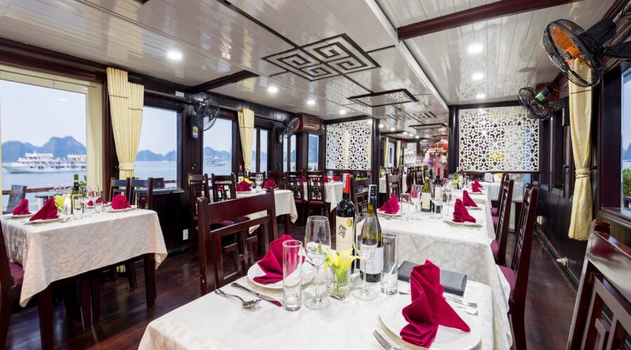 Enjoy your lunch at our luxurious restaurant on board while the vessel cruises toward Luon Cave.