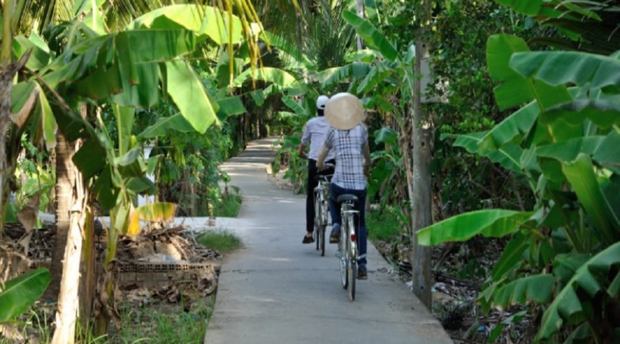 From Luong Quan temple, you keep cycling along verdant paths visit local people’s daily life.