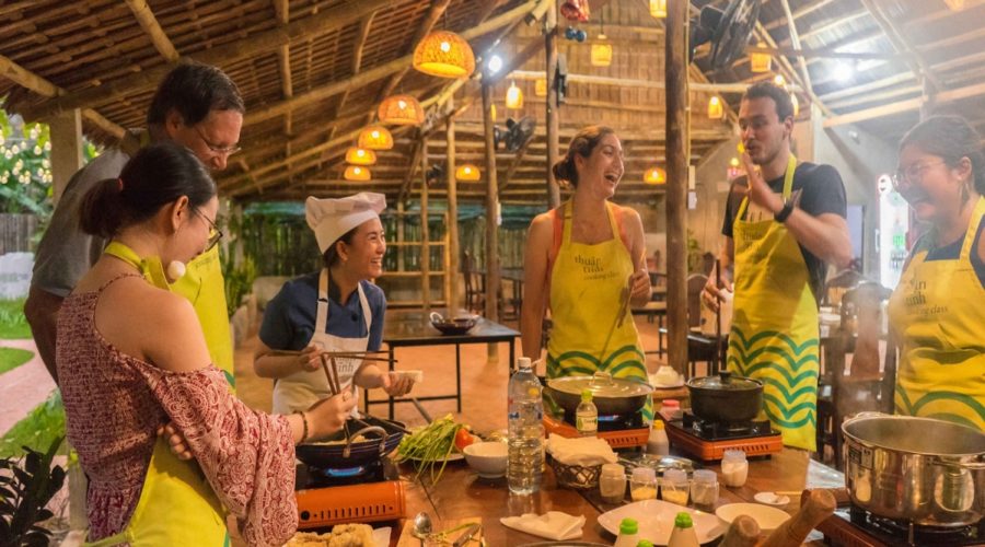 Tra Que is a charming little village on the edge of Hoi An, the village is named after the sweet scented vegetables that spice up the every day meals of the Pho Hoi people. Here a new spirit for traditional Hoi An dishes like Cao Lau. Quang nodles, enjoy cooking class served by host with the local ‘Tam Huu’ spring roll which were primarily made from Tra Que vegetables and cake with meat ( Banh xeo ) has been enlivened.