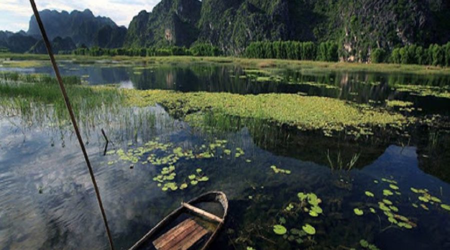 Our guide and driver meet you at your hotel in Hanoi Old Quarter then go to Van Long, we arrive at the Nature Reserve of Van Long after two hours drive (110km), we get on a bamboo rowboat as soon as we arrive for a boat trip rowing along this beautiful wetland of Van Long, enjoying spectacular scenery surrounded by rice paddies, lotus pond and towering limestone mountain peaks.