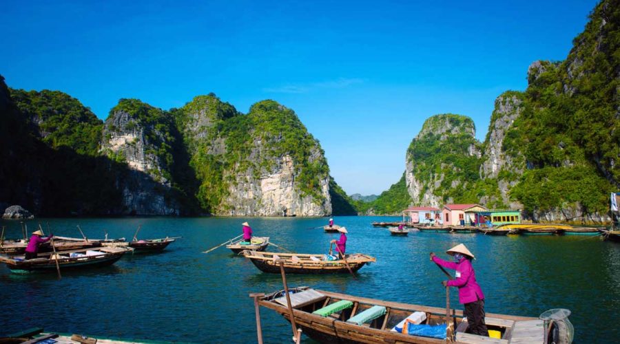 Arrival in Van Gia floating fishing village, take rowing boat through the village or kayaking to visiting around the floating fishing village. Visiting Halong Pearl Farm Village, and Swimming in the bay.