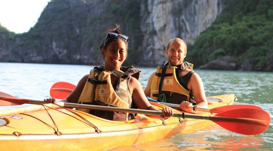 Back the cruise and relax, free fresh fruits are served. You’ll join cooking class guided directly by Chef of the Cruise. You have chance to practice Vietnamese traditional dishes such as spring roll or famous cuisine of Vietnam.