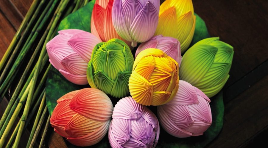 You ride along the village streets and see activities of local people cultivating vegetables and green rice fields. On the streets of this village, you will discover and learn more about the culture of the ancient architecture of the Hue people. Next, visit the paper flower gallery of the Thanh Tien village where you can find out traditional paper flower patterns and learn how to make lotus flowers under the direction of the artisan in the village.